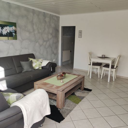 Eine gemütliche Couchgarnitur lädt zum Ausspannen oder Fernsehschauen ein und der separate Esszimmertisch lässt sich auch für einen schönen Spieleabend gut nutzen. Der Platz für den Kinderhochstuhl ist ebenfalls vorhanden.